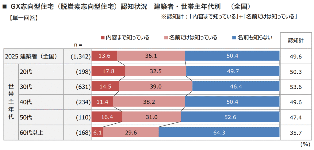 建築者(全国)のGX志向型住宅認知率は49.6%