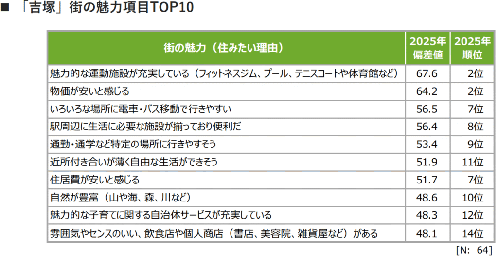 「吉塚」は2年連続で順位が上昇し、今回初めて10位にランクインした。