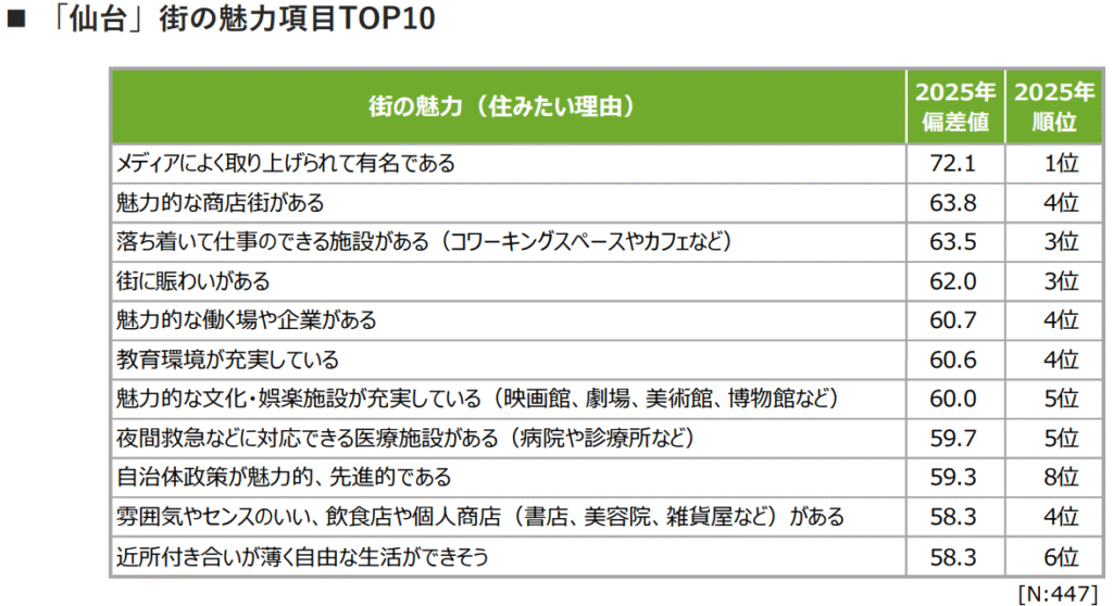 「SUUMO住みたい街ランキング2025 宮城県版/仙台市版」